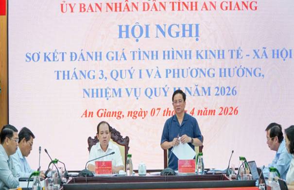 Theo đó, trong quý I/2026, tình hình kinh tế - xã hội của tỉnh tiếp tục ổn định, nhiều ngành, lĩnh vực đạt kết quả tích cực. Tốc độ tăng trưởng GRDP đạt 7,8%. Dù chưa đạt kịch bản đề ra, mức tăng này đứng đầu khu vực đồng bằng sông Cửu Long và xếp thứ 25/34 tỉnh, thành phố trong cả nước. Sản xuất nông, lâm nghiệp, thủy sản cơ bản ổn định; công nghiệp duy trì đà tăng trưởng, với chỉ số sản xuất công nghiệp (IIP) tăng 13,4% so với cùng kỳ. Khu vực dịch vụ tăng trưởng khá, trong đó du lịch là điểm sáng. Trong quý I, tỉnh ước đón gần 8,3 triệu lượt khách, trong đó có khoảng 830.000 lượt khách quốc tế; tổng thu từ du lịch ước đạt trên 21.432 tỷ đồng.Kim ngạch xuất khẩu ước đạt 569,7 triệu USD, tăng 8,14% so với cùng kỳ. Kim ngạch nhập khẩu, ước đạt 244 triệu USD, tăng 37,87% so với cùng kỳ. Thu ngân sách nhà nước đạt kết quả tích cực, với tổng thu quý I đạt 8.682 tỷ đồng, bằng 26,8% dự toán HĐND tỉnh giao và đạt 103,2% so với kịch bản thu. Tổng chi ngân sách địa phương đạt 8.350 tỷ đồng, bằng 14% dự toán; trong đó chi đầu tư phát triển đạt 2.373 tỷ đồng, chi thường xuyên đạt 5.978 tỷ đồng. Tính đến ngày 31/3/2026, giải ngân đạt 2.372 tỷ đồng, bằng 8,7% kế hoạch vốn Thủ tướng Chính phủ giao đầu năm, đạt 8,32% kế hoạch vốn giao bổ sung và đạt 8,3% kế hoạch vốn HĐND tỉnh giao.