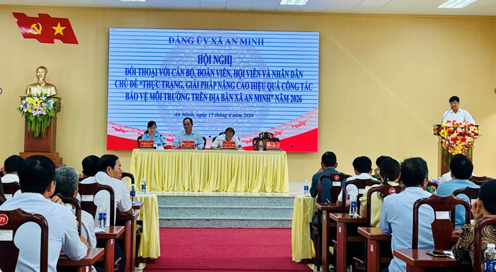 Ngày 15/4/2026, xã An Minh tổ chức Hội nghị đối thoại trực tiếp giữa người đứng đầu cấp ủy, chính quyền với cán bộ, đoàn viên, hội viên và Nhân dân về chủ đề “Thực trạng, giải pháp nâng cao hiệu quả công tác bảo vệ môi trường trên địa bàn xã An Minh”. Hội nghị do đồng chí Nguyễn Đức Chín – Tỉnh ủy viên, Bí thư Đảng ủy xã đã chủ trì. Tham dự hội nghị có các đồng chí trong Ban Thường vụ Đảng ủy, Thường trực HĐND, UBND xã; lãnh đạo các cơ quan, ban, ngành, đoàn thể; Bí thư chi bộ, Trưởng ấp và đại diện Nhân dân trên địa bàn.