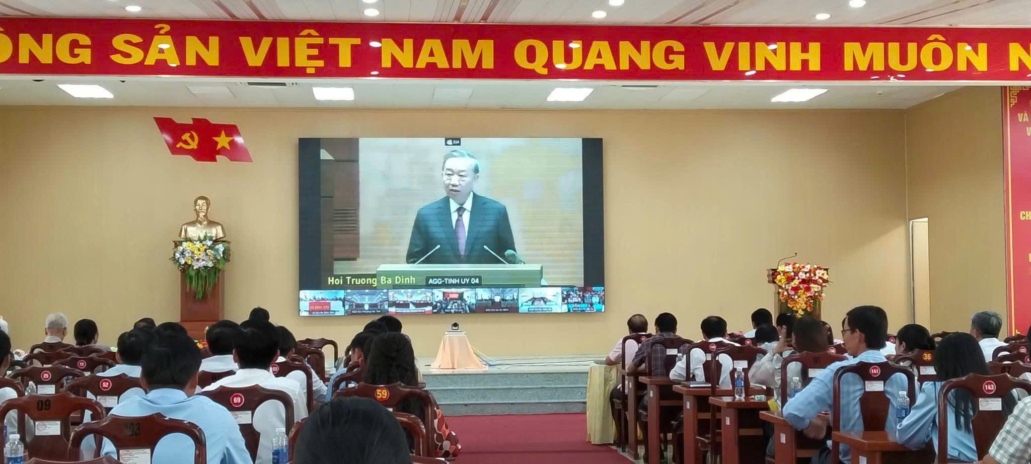 Hội nghị được kết nối trực tuyến với điểm cầu Trung ương và các địa phương trên cả nước. Tham dự tại điểm cầu xã An Minh có các đồng chí nguyên Ủy viên Ban Chấp hành Đảng bộ tỉnh, nguyên Ủy viên Ban Thường vụ Huyện ủy đang sinh sống trên địa bàn; các đồng chí Ủy viên Ban Chấp hành Đảng bộ xã, Ủy viên Ủy ban Kiểm tra Đảng ủy; lãnh đạo các ban, ngành, đoàn thể; giảng viên Trung tâm Chính trị; bí thư các chi, đảng bộ trực thuộc; cùng toàn thể cán bộ, đảng viên trong hệ thống chính trị của xã.