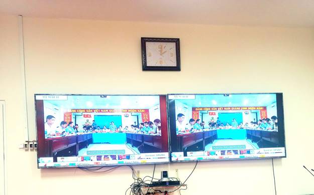 Quang cảnh kết nối trực tuyến tại điểm cầu xã An Minh