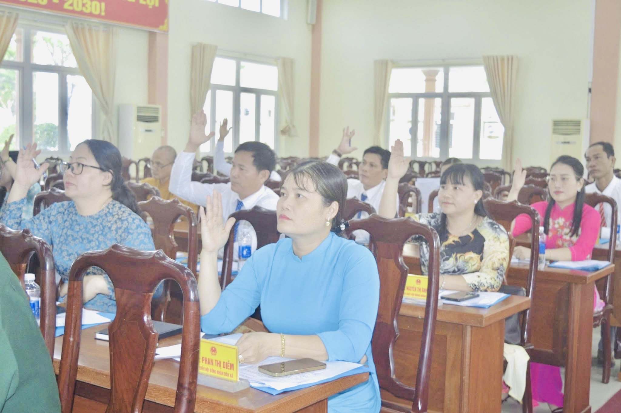 Ảnh: Đại biểu HĐND xã biểu quyết tại kỳ họp.