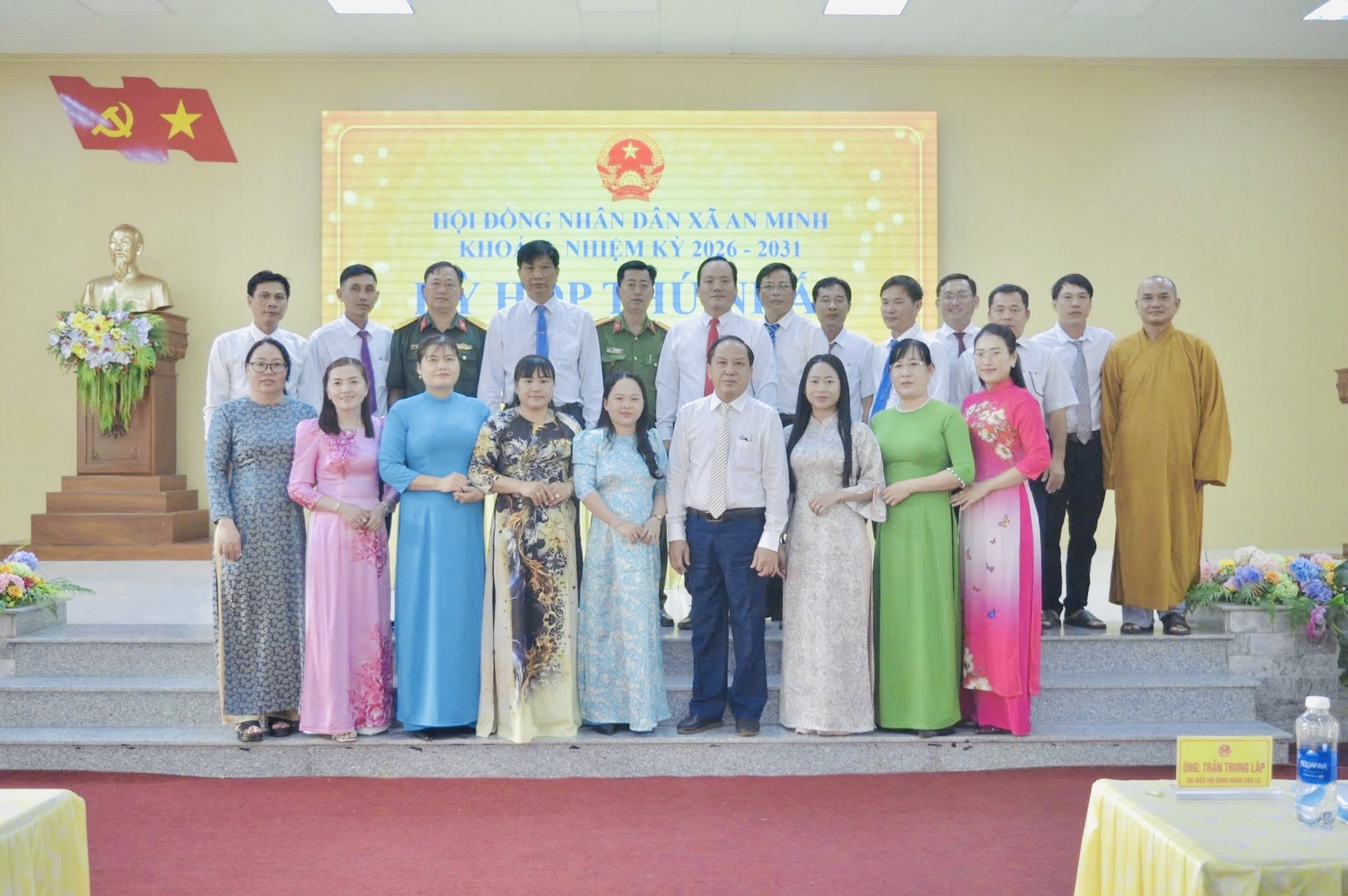 Ảnh: Đại biểu HĐND xã An Minh, khóa II nhiệm kỳ 2026-2031 chụp ảnh lưu niệm.