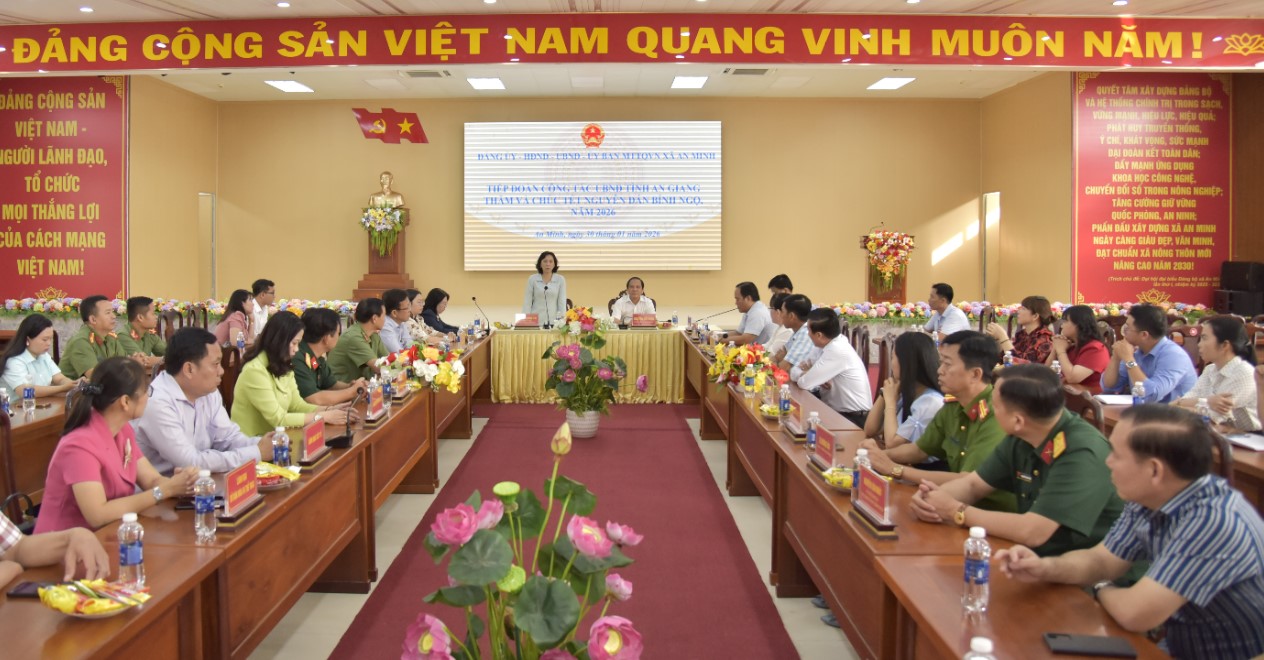 Đoàn đã thăm, chúc Tết Đảng ủy, HĐND, UBND, Ủy ban MTTQ Việt Nam, Ban Chỉ huy Quân sự, Công an xã; đồng thời, ghi nhận và đánh giá cao những kết quả địa phương đạt được trong phát triển kinh tế – xã hội, chăm lo đời sống nhân dân và giữ vững ổn định an ninh trật tự trong năm qua. Với sự quan tâm chỉ đạo của cấp ủy, chính quyền cấp trên và sự đồng thuận của Nhân dân, Ban Chấp hành Đảng bộ xã đã lãnh đạo thực hiện đạt và vượt 22 chỉ tiêu Nghị quyết đề ra, trong đó có 18 chỉ tiêu vượt nghị quyết. Đặc biệt năm 2025, Đảng bộ xã được Ban Thường vụ tỉnh ủy An Giang đánh giá, xếp loại Tổ chức Đảng hoàn thành xuất sắc nhiệm vụ. Về kết quả thực hiện Kế hoạch số 02-KH/BCĐTW trực tuyến trên Hệ thống giám sát thực hiện Nghị quyết số 57-NQ/TW xã được xếp loại xuất sắc và đứng thứ 02/102 xã, phường, đặc khu.