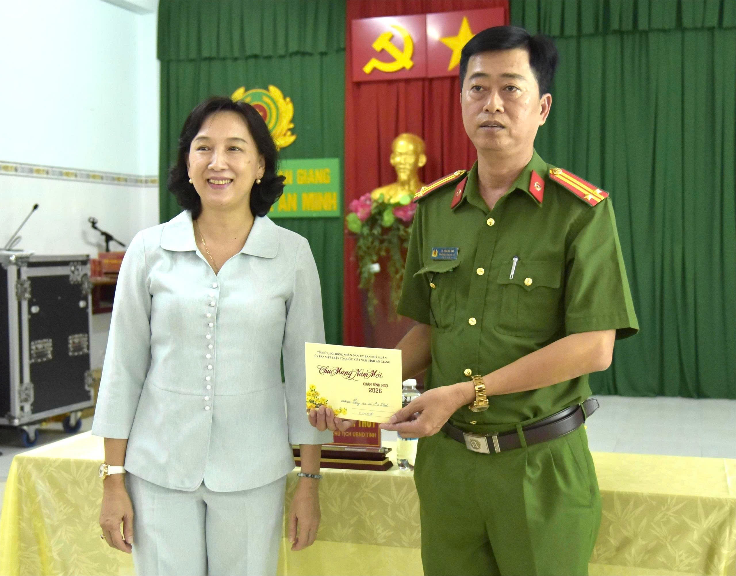 Ảnh: Phó Chủ tịch UBND tỉnh Nguyễn Thị Minh Thúy chúc Tết Công an xã