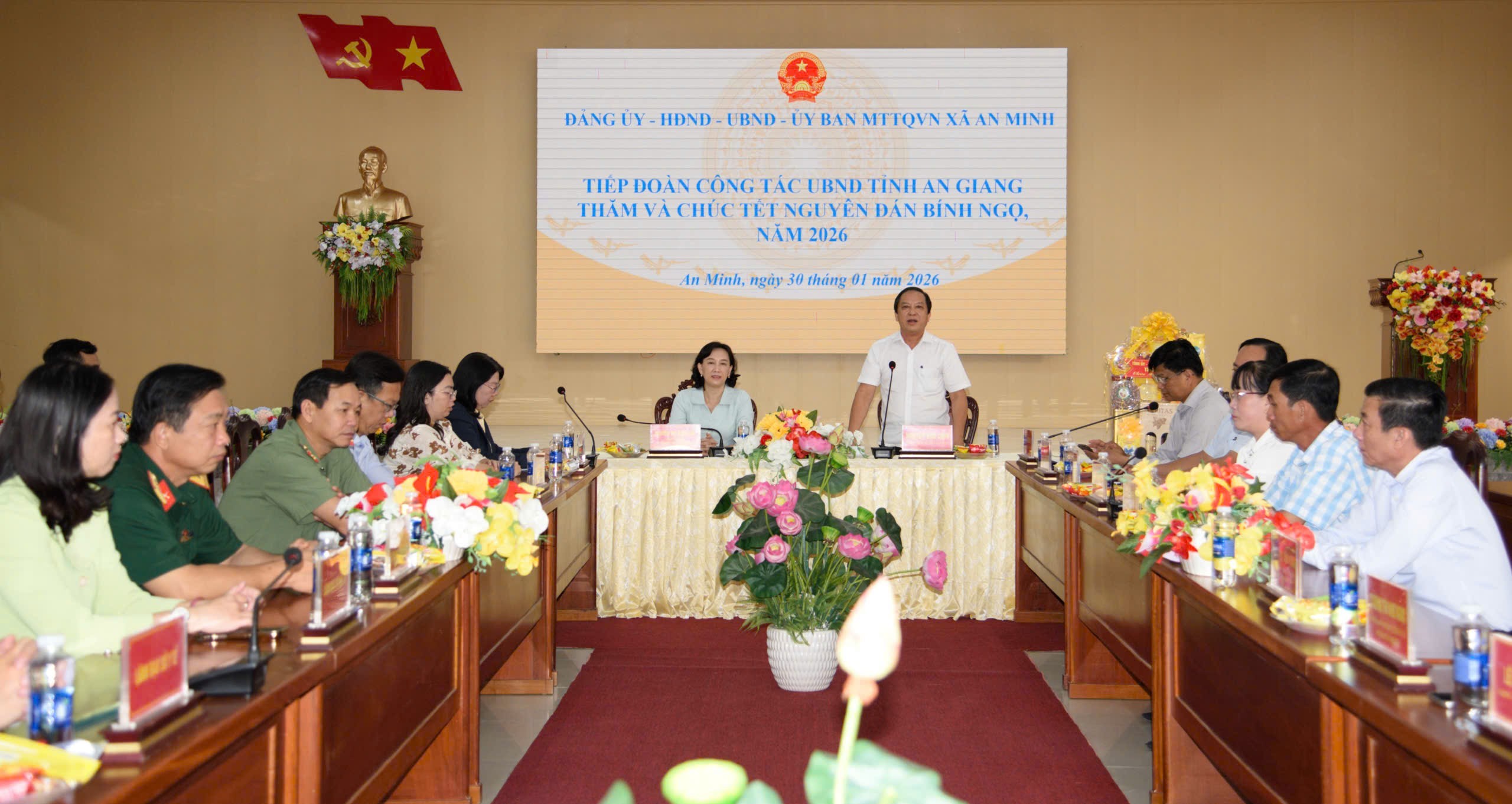 Sáng ngày 30/1, nhân dịp Tết Nguyên đán Bính Ngọ 2026, Đoàn công tác của tỉnh do đồng chí Nguyễn Thị Minh Thúy – Tỉnh ủy viên, Phó Chủ tịch UBND tỉnh làm trưởng đoàn đã đến thăm, chúc Tết các cơ quan, đơn vị lực lượng vũ trang, gia đình chính sách, người có công tại xã An Minh.