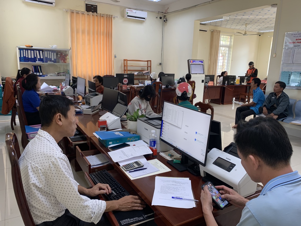 Ảnh: Quang cảnh tiếp nhận và xử lý hồ sơ của Trung tâm phục hành chính công xã An Minh.