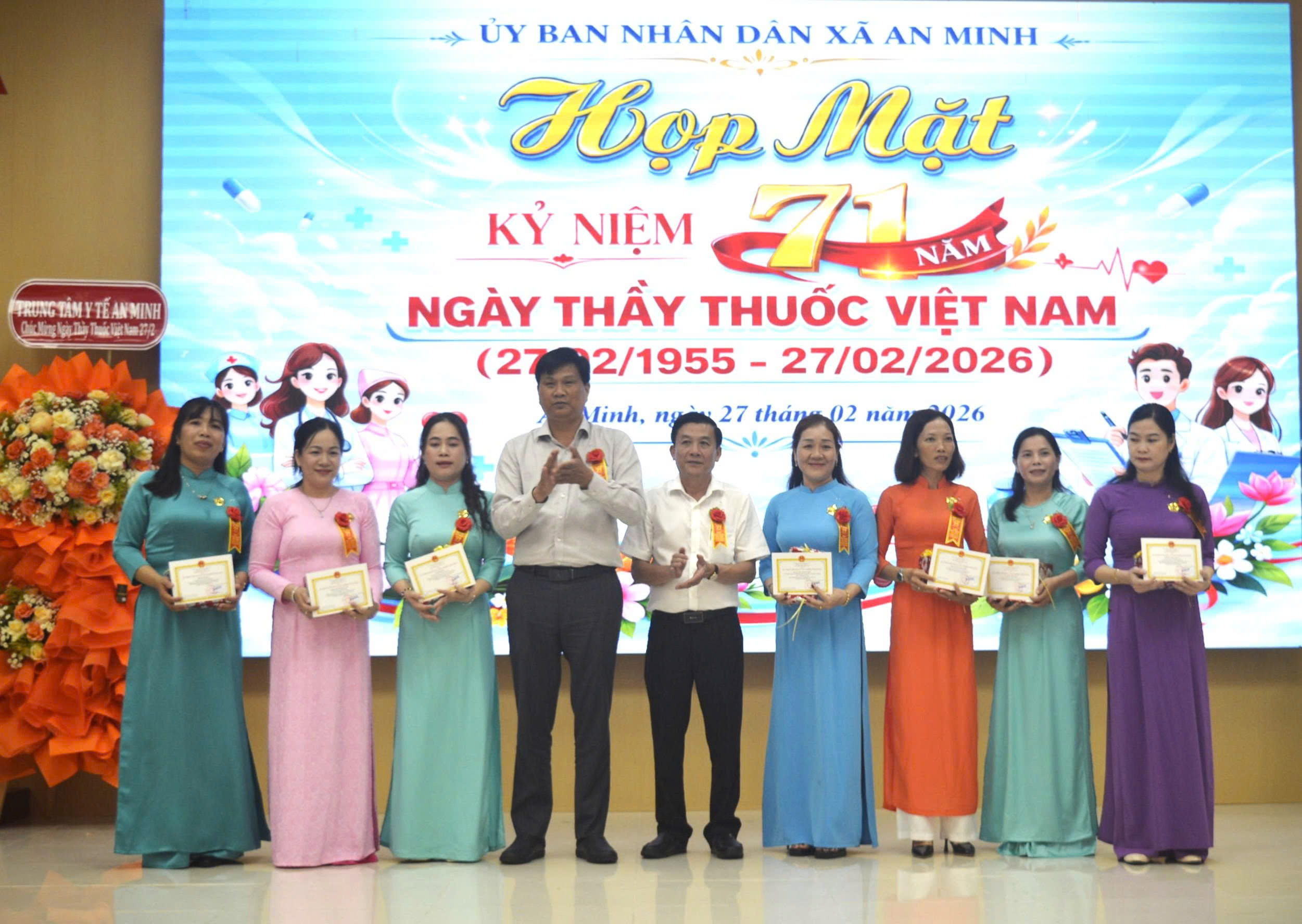 Chiều 27/2, UBND xã An Minh long trọng tổ chức Lễ kỷ niệm 71 năm Ngày Thầy thuốc Việt Nam (27/2/1955 – 27/2/2026). Tham dự buổi lễ có ông Trần Trung Lập, Phó Bí thư Đảng ủy – Chủ tịch UBND xã An Minh; Bà Trương Thị Như Ngọc, Ủy viên Ban Thường vụ Đảng ủy, Phó Chủ tịch UBND xã An Minh, ông Nguyễn Văn Tại Ủy viên Ban Thưởng vụ Đảng ủy xã, Giám đốc Trung tâm y tế An Minh cùng lãnh đạo các ban ngành đoàn thể, các ấp và toàn thể cán bộ, viên chức, người lao động Trạm Y tế xã An Minh.